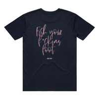 Fish your f*cking foot Adults Unisex Tee (Pink print on back)